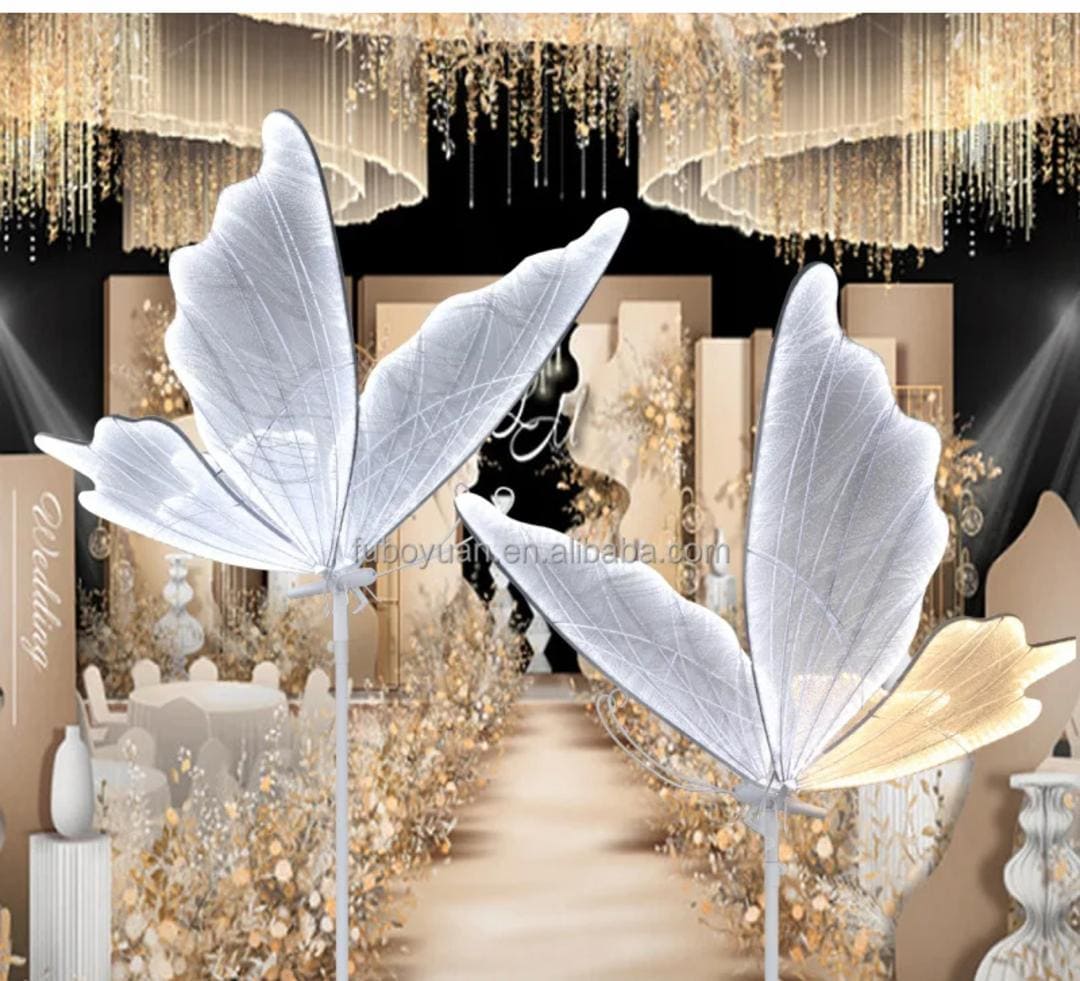Ajoutez une touche de magie féerique et de glamour à votre décor avec ces immenses papillons lumineux, disponibles en location au Togo, via Bradeloc.