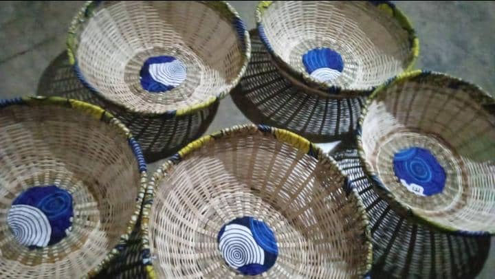 Ajoutez une touche d’authenticité africaine à votre décoration. Louez ces paniers tressés main, rehaussés par des accents en tissu pagne moderne (bleu, jaune et blanc). Parfaits pour les cadeaux d’invités, les buffets ou la décoration d’intérieur. Disponibles en location à Lomé via Bradeloc.